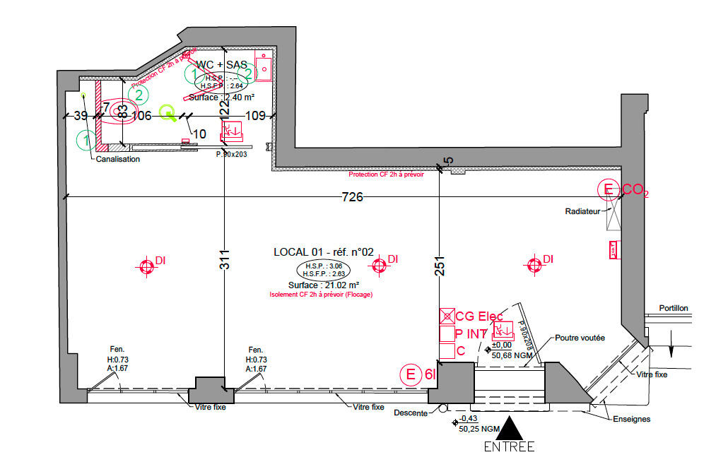 This premises has been partially renovated and brought up to standard. It consists of an entrance from the street, a sales/reception area and a unisex WC with washbasin. Three shop windows measuring approximately 5 linear metres offer a beautiful display area from the boulevard.