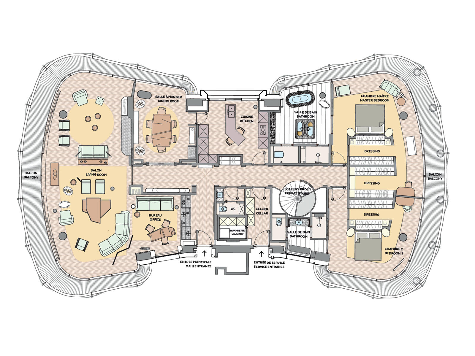 - Oltre all'affitto, sono previsti i servizi in camera dell'Hotel de Paris (casa, lavanderia, pasti...)